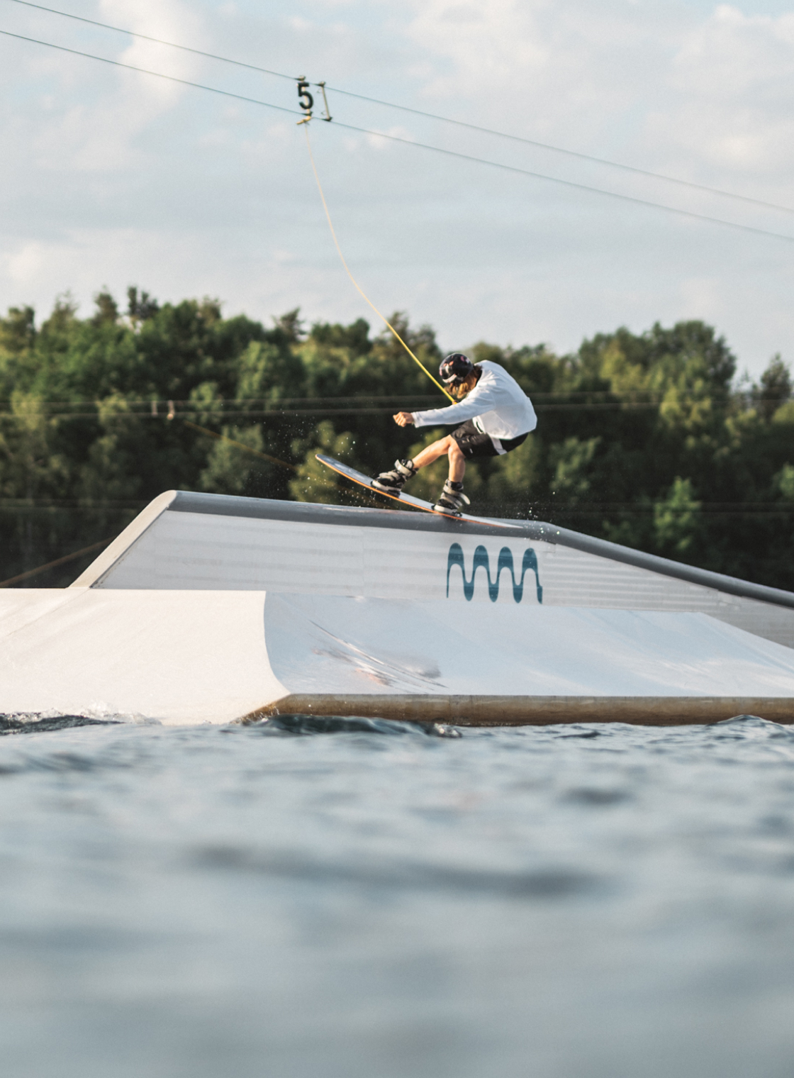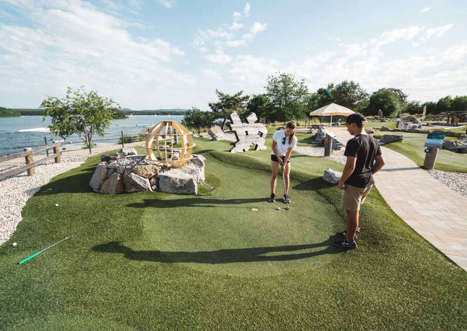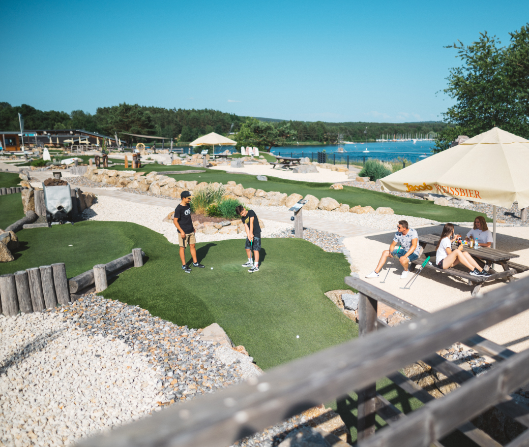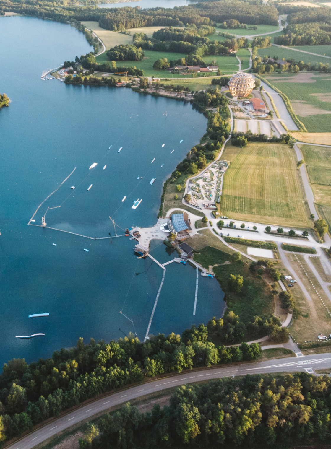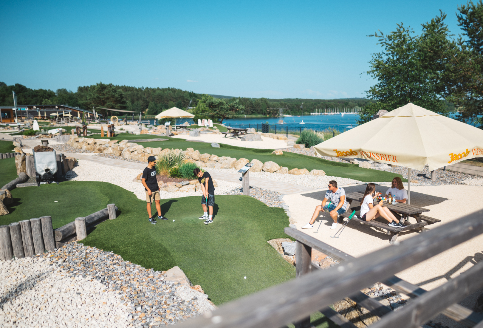 Gleich unterhalb des Adventuregolf-Kurses befindet sich der WildWakePark. Dort haben nicht nur die Wakeboard-Profis Spaß auf dem Wasser: Zwei Übungslifte machen den Einstieg für Wassersport-Neulinge kinderleicht.